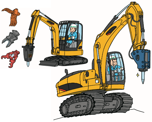 建設工事の現場や林業、畜産、農業の現場で、また除雪や造園など幅広く活躍する建機。