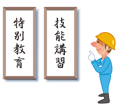 また、技能講習の他にも作業現場で必要な「特別教育」や危険有害業務、職長教育、安全・衛生管理者、推進者等に必要な「安全衛生教育」もあります。