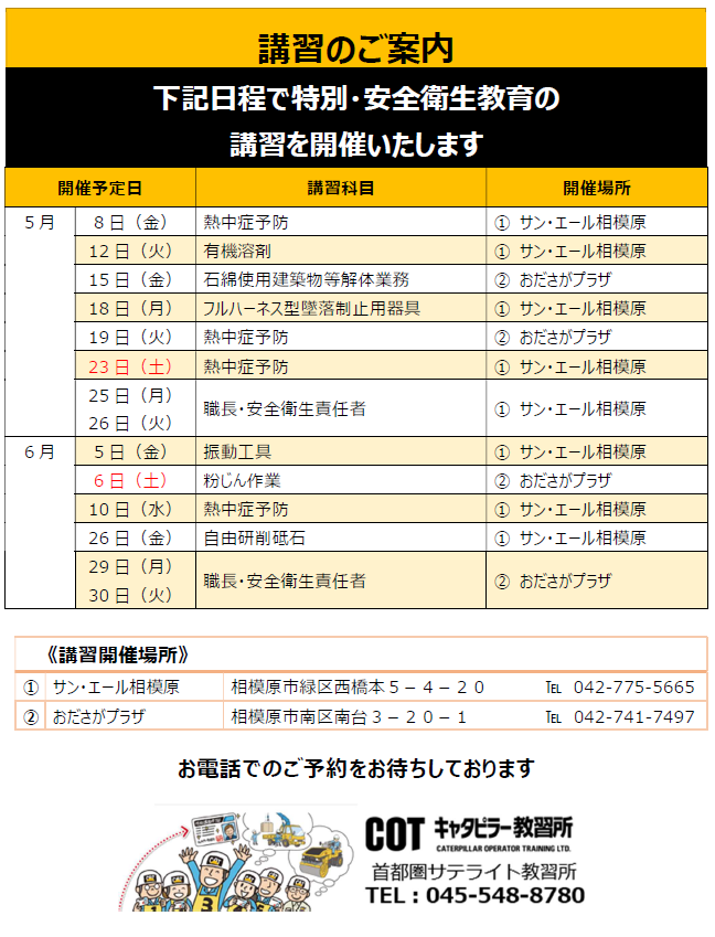 【首都圏サテライト教習所】「講習日程」のご案内